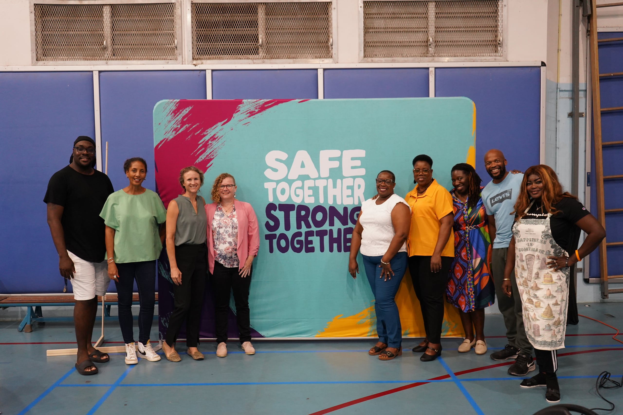 E kampaña Safe Together Strong Together tin komo meta pa sostené profeshonalnan manera trahadó sosial, dosente i trahadó den kuido ku aplikashon di e Kódigo di Protekshon nobo. Ademas a lanta puntonan di konseho na kada isla kaminda tur hende por akudí pa haña yudansa, konseho òf kontesta riba pregunta.